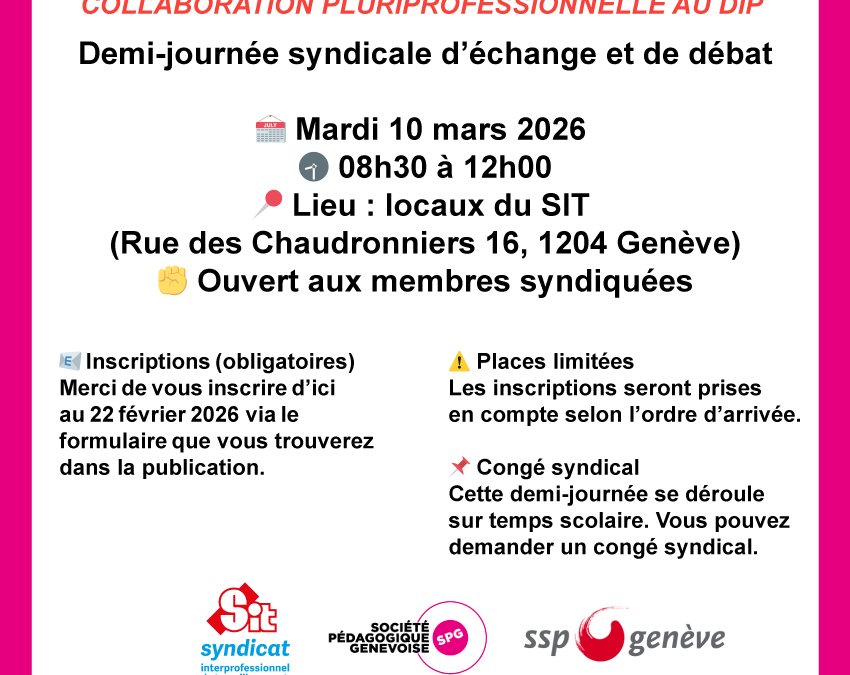 Le SIT, la SPG et le SSP Genève vous invitent à une